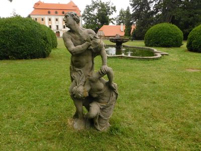 Socha Atys a Ia v zámeckém parku ve Valči, statue in Valeč, Czech Republic