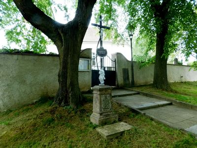 Kříž u brány kostela sv. Barbory v Přísece