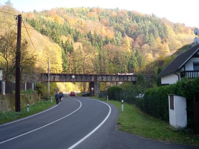Railway bridge over the Revoluční street in Loket, ocelový příhradový most zanikající železniční tratě přes silnici mezi Loktem a Údolím