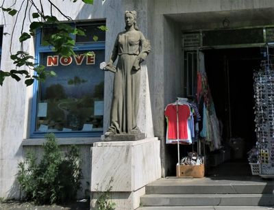 Socha ženy před bývalým hotelem na Náměstí ve Kdyni, statue in Kdyně, Czech Republic