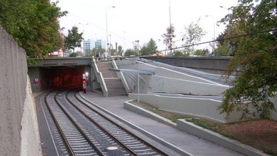 Tram tunnel Ďáblická - Střelničná, tramvajový podjezd pod křižovatkou ulic Střelničná, Ďáblická a Vysočanská na trojmezí Kobylis, Střížkova a Libně