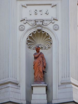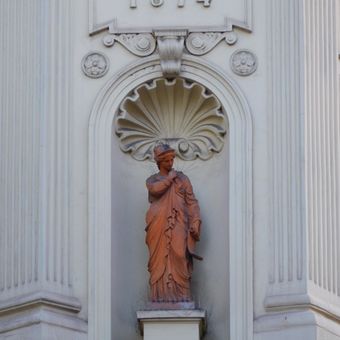Statue of a woman at Dlážděná/Hybernská corner, statue in Prague