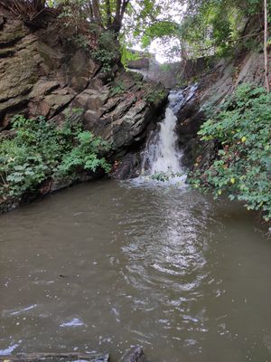 A cascata apareceu quando o açude do castelo foi construído como parte de seu sistema de gestão de água, mostrando soluções de engenharia primitivas da região. A construção artificial permitiu que o excesso de água fosse drenado de forma controlada.