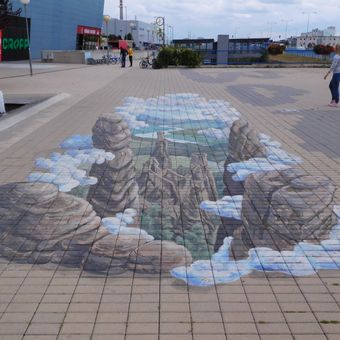 Rock Formations in Bohemian Paradise, street painting in Mladá Boleslav