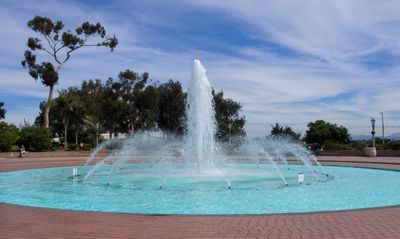 A fonte Bea Evenson e uma estrutura modernista localizada na extremidade leste de El Prado dentro de Balboa Park. Os jatos de agua surgem da bacia, criando um ponto focal dinamico no espaco.