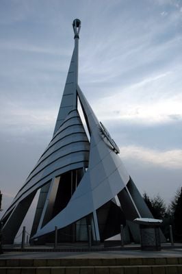 O Marco de Putrajaya ergue-se no ponto mais alto do Primeiro Distrito, incorporando uma cápsula do tempo em sua estrutura metálica.