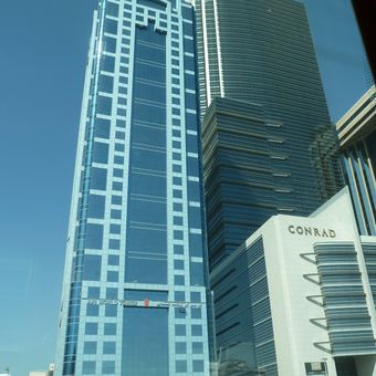 Conrad Dubai é um moderno arranha-céu de vidro com 255 m de altura que funciona como hotel de luxo no centro de Dubai. O edifício oferece quartos amplos com casas de banho grandes equipadas com duches de chuva e banheiras autónomas, bem como janelas com vistas para a skyline, o mar ou o golfo.