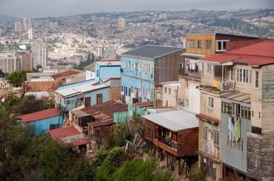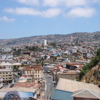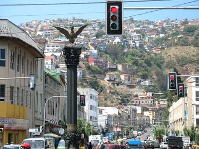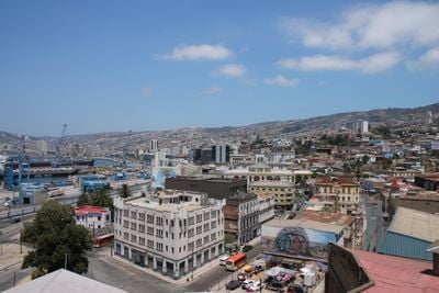 Valparaíso é uma cidade portuária e capital legislativa ao longo da costa central do Chile, estendendo-se por mais de 40 morros e conectando diferentes níveis através de funiculares, elevadores e ruas sinuosas. As construções vão desde estruturas coloniais no centro até casas de madeira coloridas nas encostas, enquanto o porto inclui terminais de contêineres e um distrito comercial adjacente.
