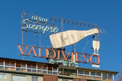 O letreiro publicitário Valdivieso é um grande display de neon em forma de garrafa de champagne, montado em um telhado na Rua General Bustamante 93 em Santiago. A instalação mantém seus elementos de neon originais e componentes mecânicos desde sua criação em meados do século vinte.