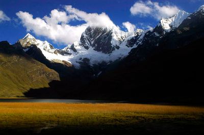 Rondoy alcança 5.870 metros de altitude na seção norte da cordilheira Huayhuash dos Andes peruanos.