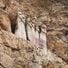 Sete sarcófagos de argila se erguem em uma face rochosa a 200 metros acima do vale, cada estrutura medindo 2,5 metros de altura.