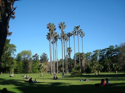 O Parque Prado estende-se por 106 hectares, com avenidas arborizadas, jardins, lagos e o Riacho Miguelete atravessando seus terrenos.