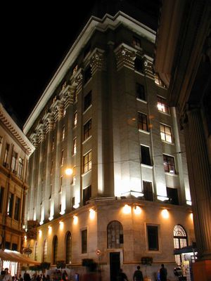 Construído na década de 1940 para o Banco Comind, o edifício foi adquirido pela Bovespa em 1986 por 10 milhões de dólares em leilão.