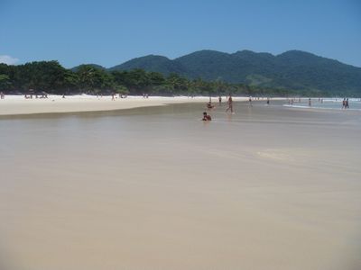 A Praia de Lopes Mendes estende-se por três quilômetros ao longo da costa da Ilha Grande, com areia branca e águas claras.