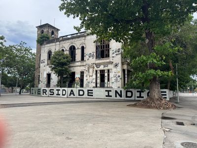 O assentamento indígena ocupa um edifício do século XIX próximo ao Estádio Maracanã, funcionando como centro cultural e local histórico.