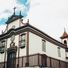 A Igreja Nossa Senhora do Carmo apresenta paredes brancas e elementos em pedra característicos da arquitetura religiosa colonial portuguesa.