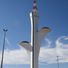 A estrutura de concreto e aço de 224 metros apresenta duas plataformas de observação em forma de pétalas que se estendem de uma haste central.