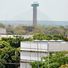O mirante no topo do mastro oferece vistas de 360 graus de Teresina, acessível por elevadores panorâmicos e comportando até 100 visitantes.