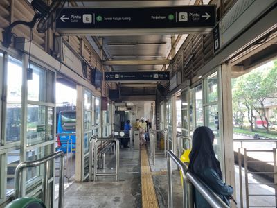Ônibus TransJakarta e múltiplas rotas de microônibus incluindo JAK 24, 60, 61, 76 e 87 servem a estação com sistemas de tarifa automatizados. Os visitantes devem se familiarizar com as rotas disponíveis, pois a estação funciona como um importante ponto de transferência para diferentes linhas.