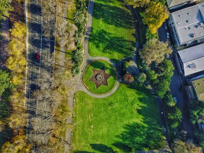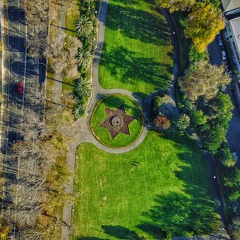 O ponto central dos Jardins Alexandra inclui um canteiro em forma de estrela que representa a Federação da Austrália.