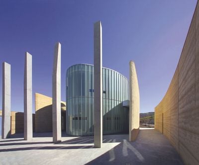 O Museu de Arte TarraWarra exibe obras de arte moderna australiana em um edifício localizado no topo de uma colina com vista para o Vale Yarra e montanhas.