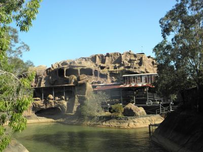 A atracao apresentava temas de mineracao com figuras animadas e veiculos em estilo de carrinhos de mina que refletiam o legado da corrida do ouro australiana. Os visitantes podiam observar esses detalhes enquanto percorriam a estrutura artificial.