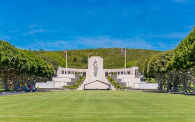 Este cemitério militar situa-se dentro de uma cratera vulcânica extinta, onde fileiras de lápides planas de granito se estendem por gramados bem cuidados. O memorial central apresenta relevos e inscrições, com degraus que levam a uma capela e plataforma de observação com vista para o terreno.