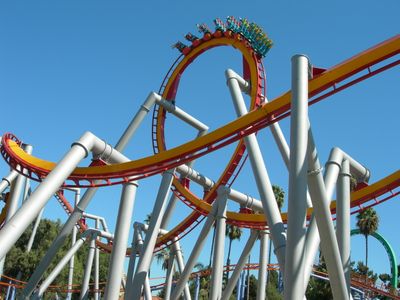 Silver Bullet, Montanha-russa de aço no Knott's Berry Farm, Califórnia, Estados Unidos.
