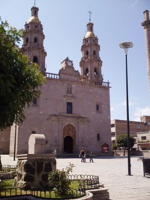 A iglesia de San Miguel Arcángel é um templo barroco em San Miguel el Alto com uma fachada de pedra rosa e duas torres hexagonais. O edifício apresenta uma estrutura sólida com proporções substanciais que dominam o horizonte da cidade.