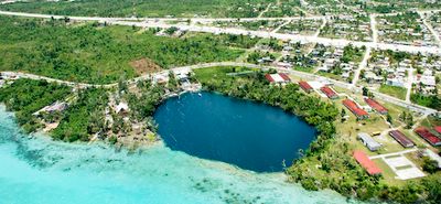 O Cenote Azul é uma dolina natural em Quintana Roo com uma bacia calcária profunda preenchida com água doce cristalina adequada para natação e mergulho. A água atinge profundidades consideráveis que permitem exploração tanto na superfície quanto sob a água.