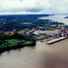 Santana estende-se por 1.541 quilômetros quadrados ao longo do rio Amazonas, funcionando como centro de transporte próximo ao equador no norte do Brasil.