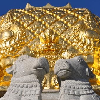 O Iraivan Temple é um santuário hindu em Kauai County, construído com blocos de granito branco entalhados à mão na Índia e transportados através do Pacífico até ao Havaí. As pedras foram encaixadas sem argamassa, e cada elemento encaixa com precisão na posição prevista, de modo que a estrutura se mantém pelo seu próprio peso.