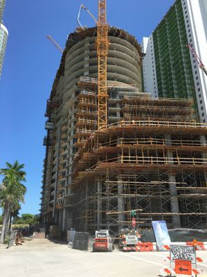 O edifício residencial de 163 metros inclui 648 unidades distribuídas em 53 andares, com vistas para a Baía de Biscayne e o Parque Margaret Pace.