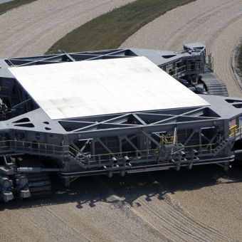 O crawler-transporter é um veículo sobre lagartas no condado de Brevard que desloca foguetes e naves espaciais pelo terreno do Centro Espacial Kennedy. Oito suportes hidráulicos mantêm a plataforma nivelada enquanto rola a menos de dois quilômetros por hora por uma larga estrada de cascalho.