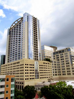 Solaire at the Plaza e uma torre residencial de 31 andares no centro de Orlando com janelas do piso ao teto que oferecem vistas da cidade. O edificio se eleva cerca de 109 metros e domina o horizonte urbano da area.
