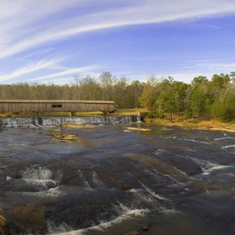 Construída em 1885 por W.W. King, filho do escravo liberto Horace King, a ponte representa uma das 20 pontes cobertas restantes na Geórgia.