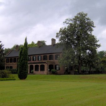 Os tanques de água simétricos refletem fileiras de árvores e foram projetados segundo princípios de jardinagem francesa raramente vistos na América colonial. Um pântano de ciprestes limita diretamente as áreas formais, mostrando a paisagem fluvial local.