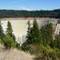 A barragem de New Bullards Bar eleva-se 194 metros e cria um reservatório que armazena 1,196 quilômetros cúbicos de água no nordeste do Condado de Yuba.