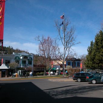A rua principal e as ruas laterais percorrem-se facilmente a pé, com a maioria dos edifícios próximos. Muitas lojas e instalações ficam no centro, enquanto a Universidade do Sul do Oregon situa-se um pouco mais afastada.