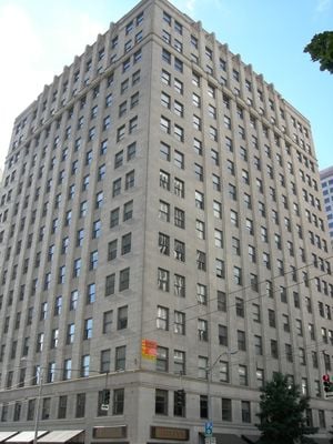 O edificio situado na esquina da Avenida Fourth e Union Street tem uma fachada de arenito e grandes janelas distribuidas em 15 andares. Fortes pilares verticais percorrem a fachada e criam secoes definidas que organizam a estrutura visual.