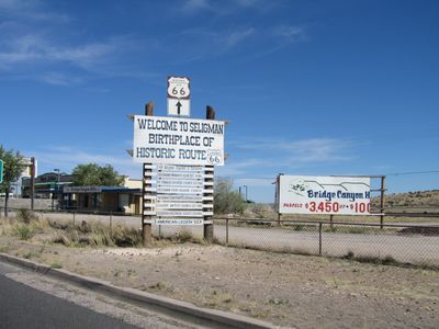 Seligman se estende por 6,4 milhas quadradas de terreno no norte do Arizona a uma altitude de 1.598 metros ao longo da histórica Rota 66.
