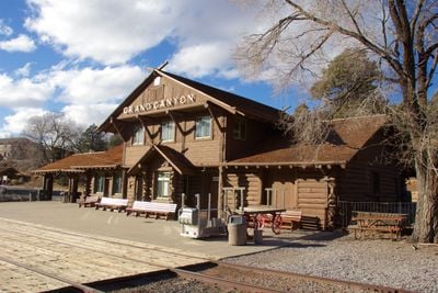 O Grand Canyon Depot é uma estação ferroviária no vilarejo do Grand Canyon com amplos salões de plataforma em madeira, alicerces de pedra e paredes de troncos que refletem a arquitetura ferroviária do início do século 20. A estrutura combina elementos de design funcional com materiais rústicos típicos das práticas construtivas daquela época.