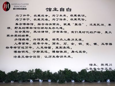 O complexo foi fundado nos anos 2000 por um colecionador privado e se tornou uma das maiores coleções históricas não governamentais da China. O museu enfatiza eventos importantes como a resistência à invasão japonesa e o impacto do grande terremoto de 2008.