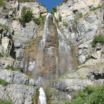 Stewarts Cascades, tiered waterfall in the Mount Timpanogos Wilderness in Utah County, Utah, United States