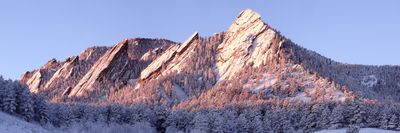 Os Flatirons consistem em cinco grandes placas de arenito que se elevam a 2286 metros acima do nível do mar na encosta leste de Green Mountain.