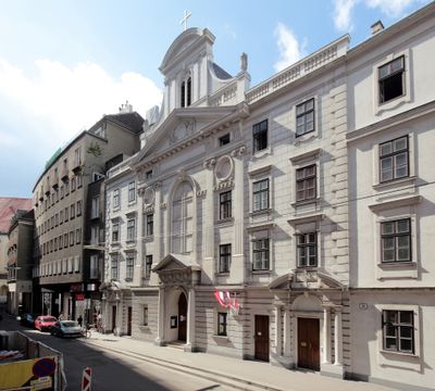 O edifício fica em Dorotheergasse 18 no primeiro distrito de Viena, ao lado da Igreja Reformada da Cidade. A casa de leilões Dorotheum em frente serve como um ponto de referência útil para encontrar o local.