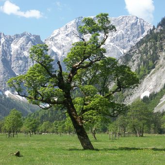 O Großer Ahornboden cobre 267 hectares de pradarias alpinas pontilhadas com bordos ancestrais que podem atingir 600 anos de idade, situado entre 1080 e 1300 metros de altitude no Parque Natural de Karwendel.