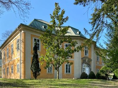 Bergschlößl e uma casa solarienga em Linz, Austria, com dois andares e telhado em mansarda. O edificio apresenta trabalho de pedra rusticado no pavimento terreo, portais elaboradamente projetados e molduras de gesso vertical na fachada, enquanto um parque com varios poroes de jardim circunda a propriedade.