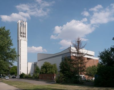 O arquiteto Georg Lippert projetou esta igreja católica, concluída em 1963 seguindo princípios arquitetônicos modernos.