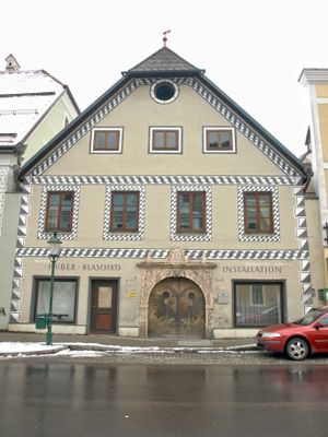 O edificio foi construido na segunda metade do seculo XVI como uma estrutura gotica tardia e posteriormente se tornou a residencia de Valentin Preuenhueber. Em 1625, ele liderava as operacoes de mineracao do Innerberger.